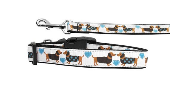 Pet Dog & Cat Nylon Collar or Leash, "Doxie Love"